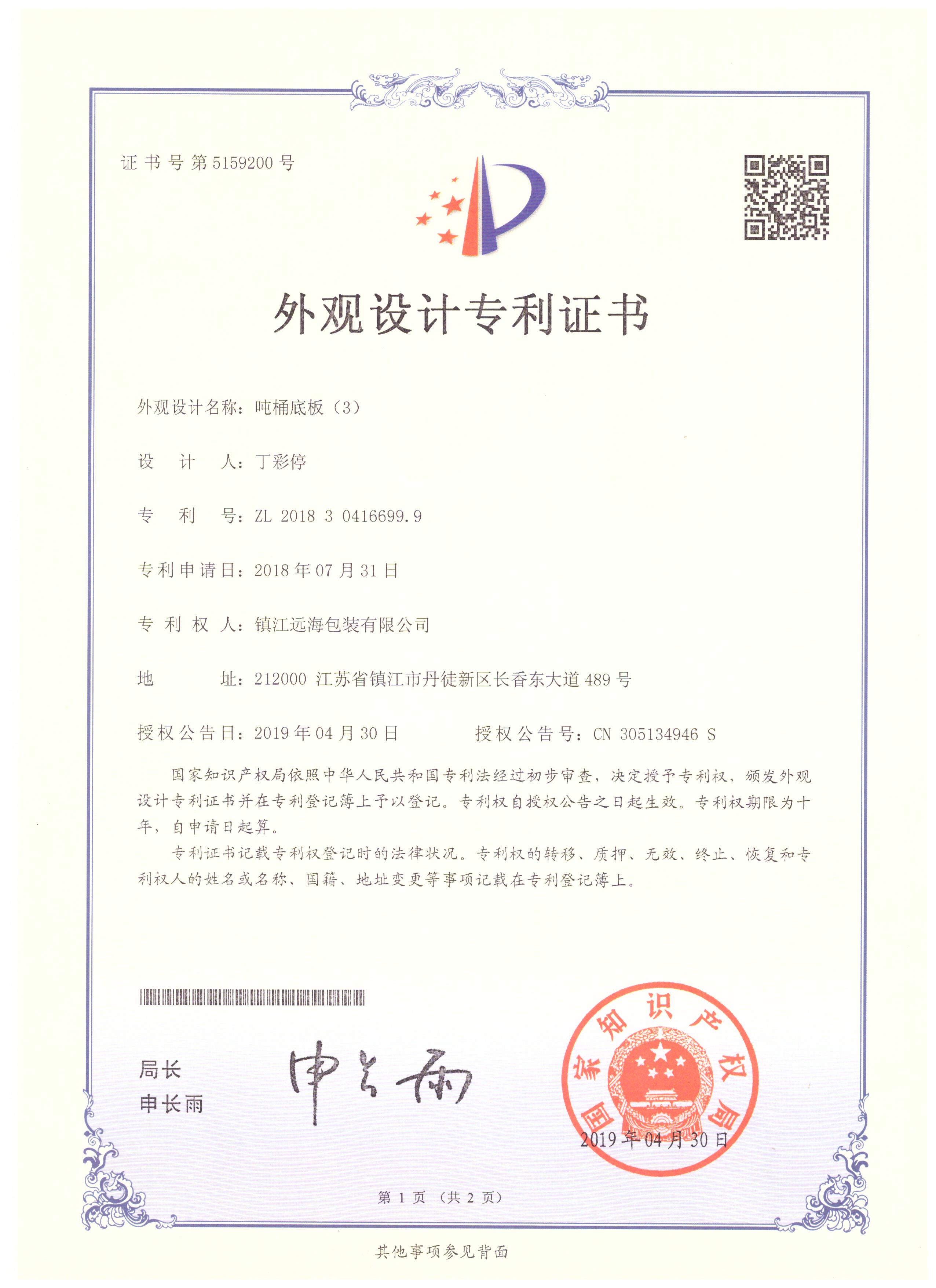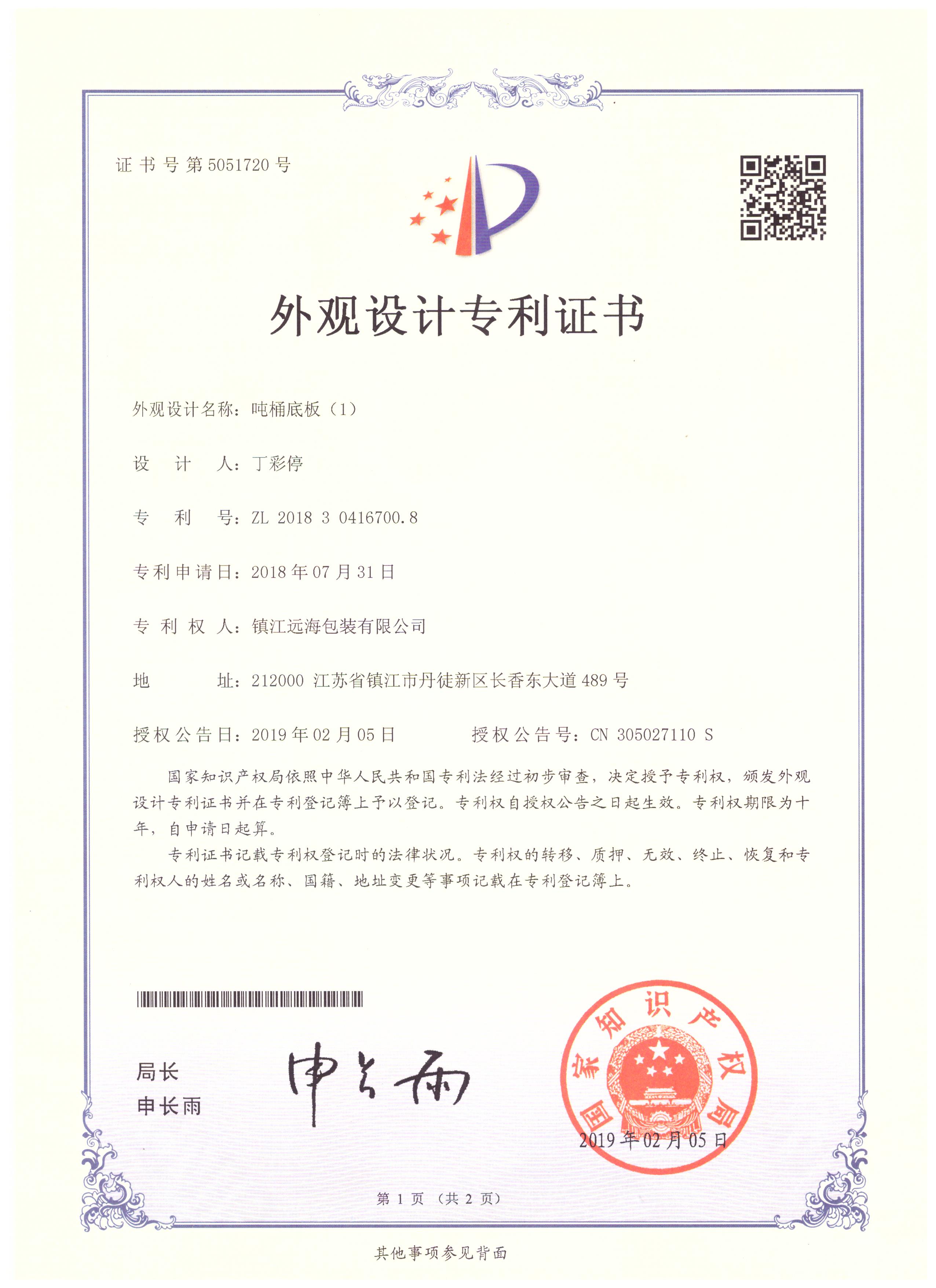 鎮江遠海包裝有限公司成立于2014年8月,是一家專注于生產IBC噸桶及零配件的企業,主要產品有各種型號的底板、橫梁、底角、標牌、鍍鋅焊管等。公司擁有相關產品的外觀型和實用型8項專利。